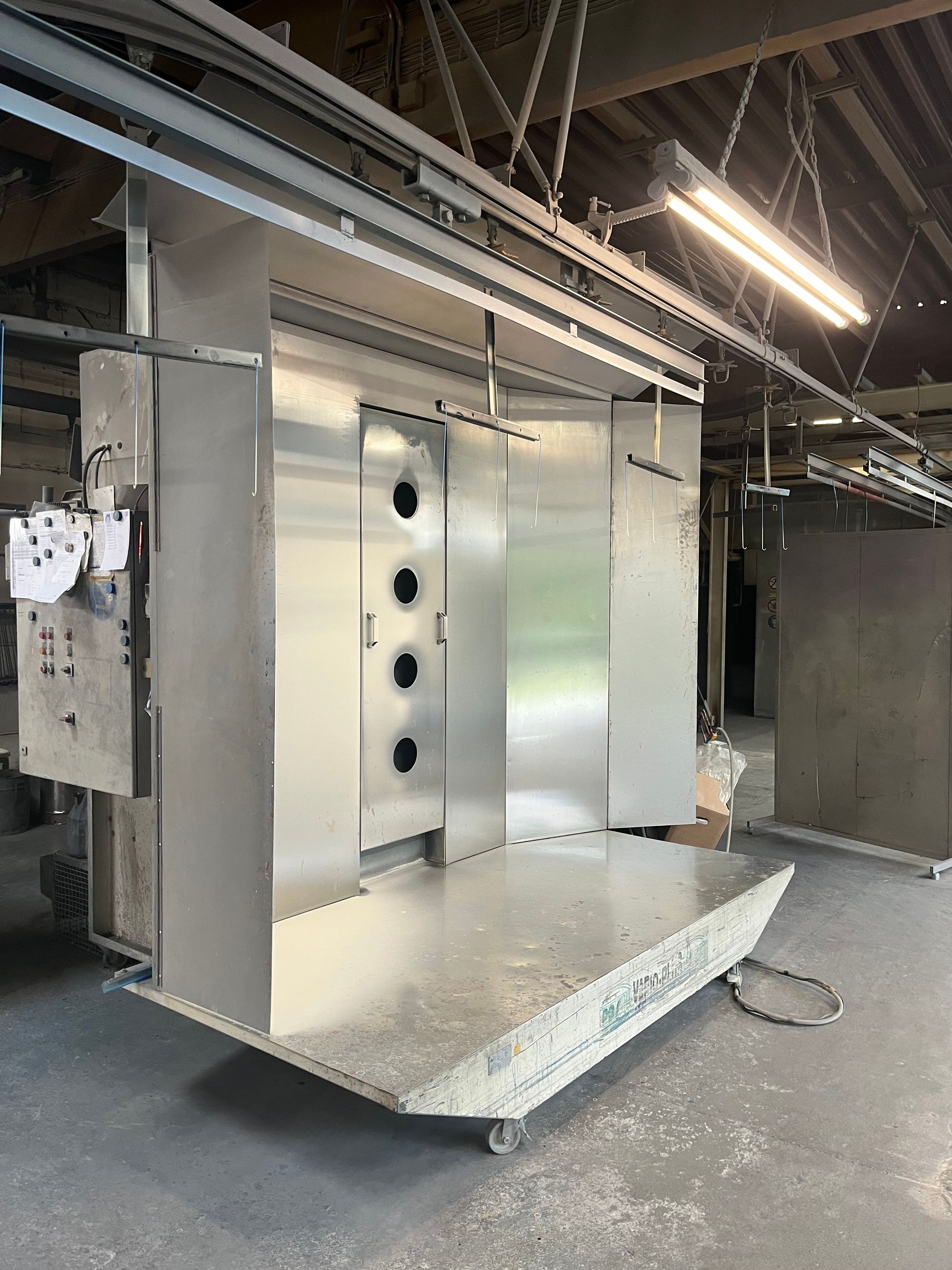 Die Anlage 3 ist für Kleinteile konzipiert und verfügt über eine automatische Entfettungsanlage. Sie wird mit zwei Linearhubwerken bedient. Automatikkabine: 1000x300x300 (LxBxH)